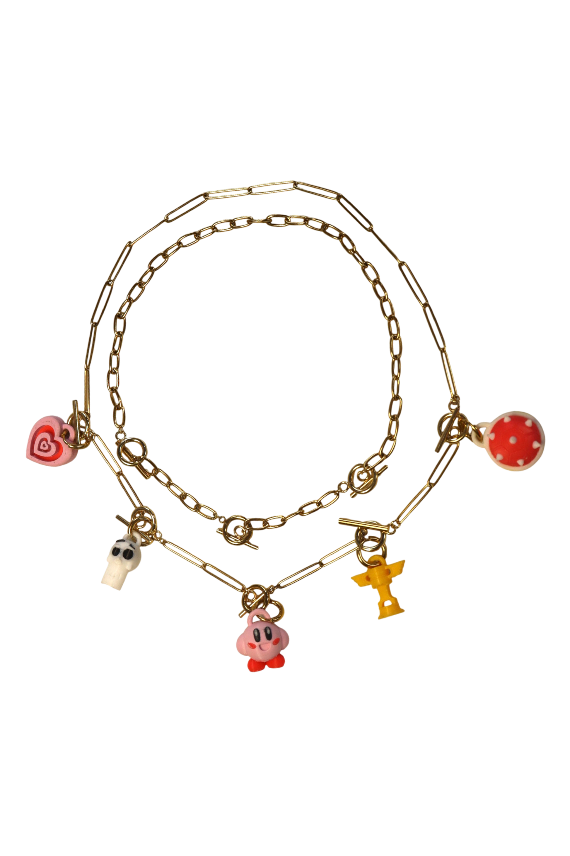 Nuestro combo dorado con 5 dijes ofrece una mezcla equilibrada de estilo y versatilidad. La cadena dorada sirve como base para un set de dijes variados que puedes combinar a tu gusto, creando un accesorio personal y adaptable a cualquier look.